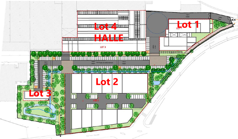 et locaux supportsTerrain à vendre Lot 3 536 m2 de bureaux Locaux à louer Lot 4 6 064 m2 d’activités
